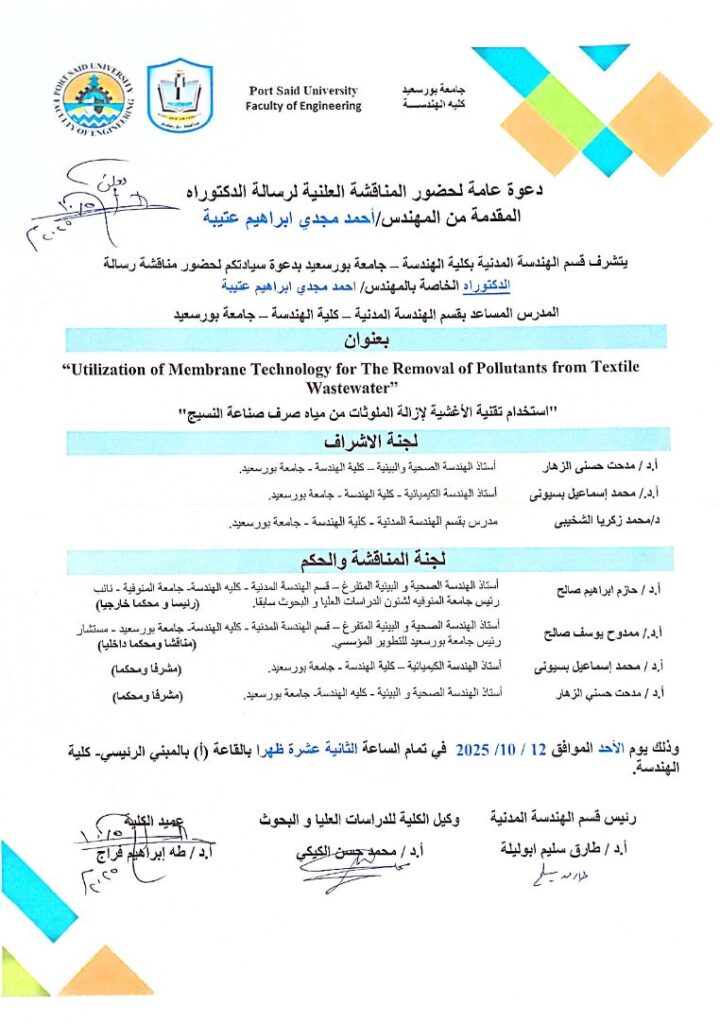 دعوة لحضور مناقشة رسالة الدكتوراه المقدمة من المهندس / أحمد مجدي ابراهيم عتيبةبواسطة Engineering Author / أكتوبر 6, 2025