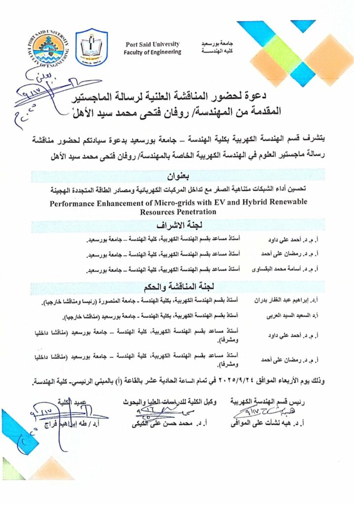 دعوة لحضور مناقشة رسالة الماجستير المقدمة من المهندسة / روفان فتحي محمد سيد الأهلبواسطة Engineering Author / سبتمبر 17, 2025