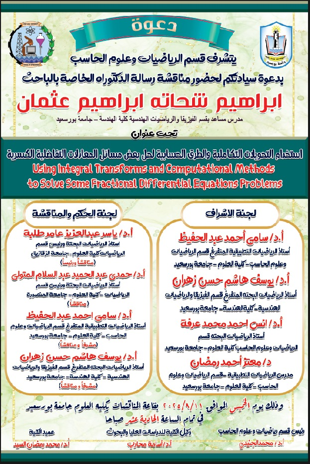 أستاذ الرياضيات التطبيقية المتفرغ قسم الرياضيات وعلوم الحاسب كلية العلوم – جامعة بورسعيد